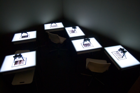 Emperor Panorama, 6 light tables, 6 transparencies, 6 magnifying stereoscopes (installations: Scope, New York, 2007 and Queens Museum of Art, New York, 2008, collection: Queens Museum of Art, New York)